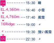 16Ridgeの途中でBが手指の凍傷を訴えるが、何とかC5へ到着。すぐ温くしてシュラフに入る。薬等の対応はない。