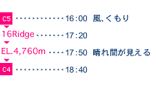 風雪がうるさかったが熟睡。 本日は休息の予定であったが、Bを診たNPSの医師がC4(医療手当ができるのでMedical Campとも呼ばれる。)で手当するようにと指導。Bは登頂を断念し、下山の意向。 B、EがC5 → C4 A、C、DはC5に残り、登頂態勢を維持する 案も議論としてあったが、6月5日(日)の天気が期待できないという予報もあり(これが全くはずれ、登頂日となった。)全員でC4へ急遽下山することとなった。 ![]() 1人残ってテントを撤収し、食糧等をデポしたEは ![]() の驚異的な速さで下山した。 医師(女性)の判断は、下山し、紹介するAnchorageの医師の手当てを受けるようにとのこと。 今後の予定