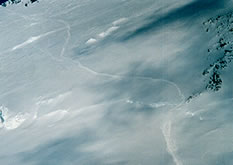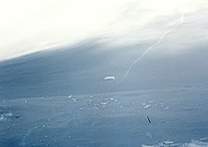 Denali Passへのトラバースクレバスを巧妙に避けてトレイスが続く このトレイスも大降雪で潰れた